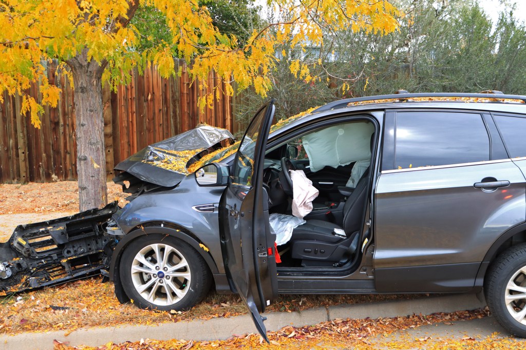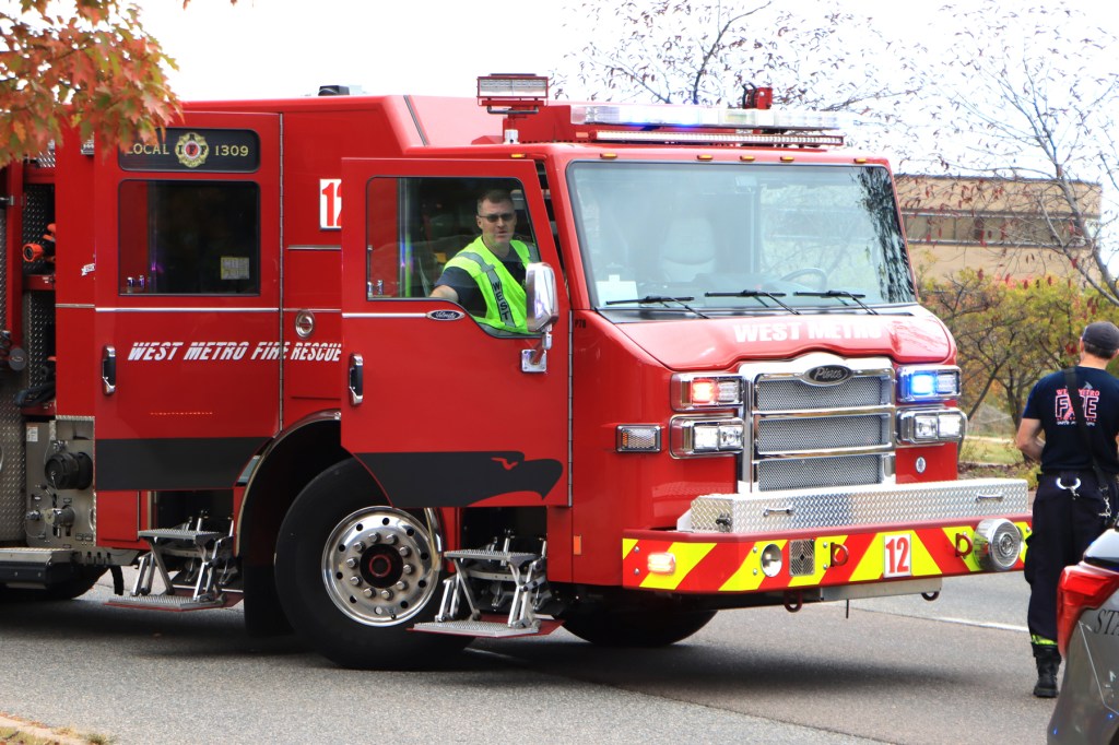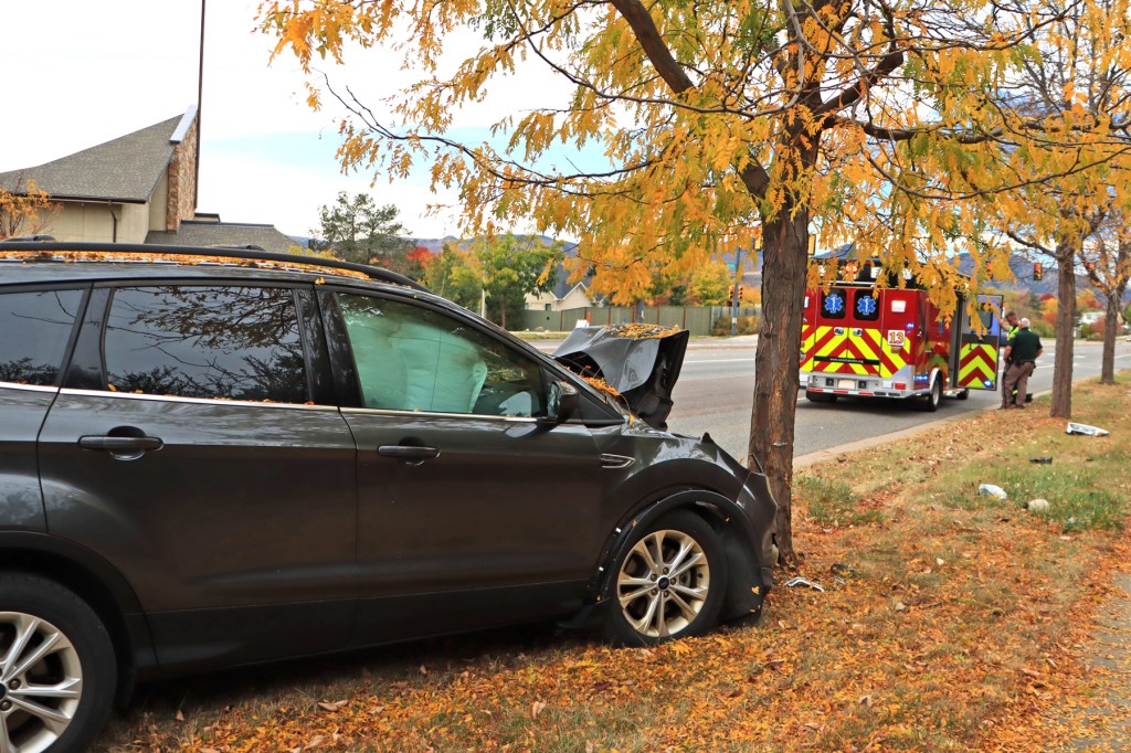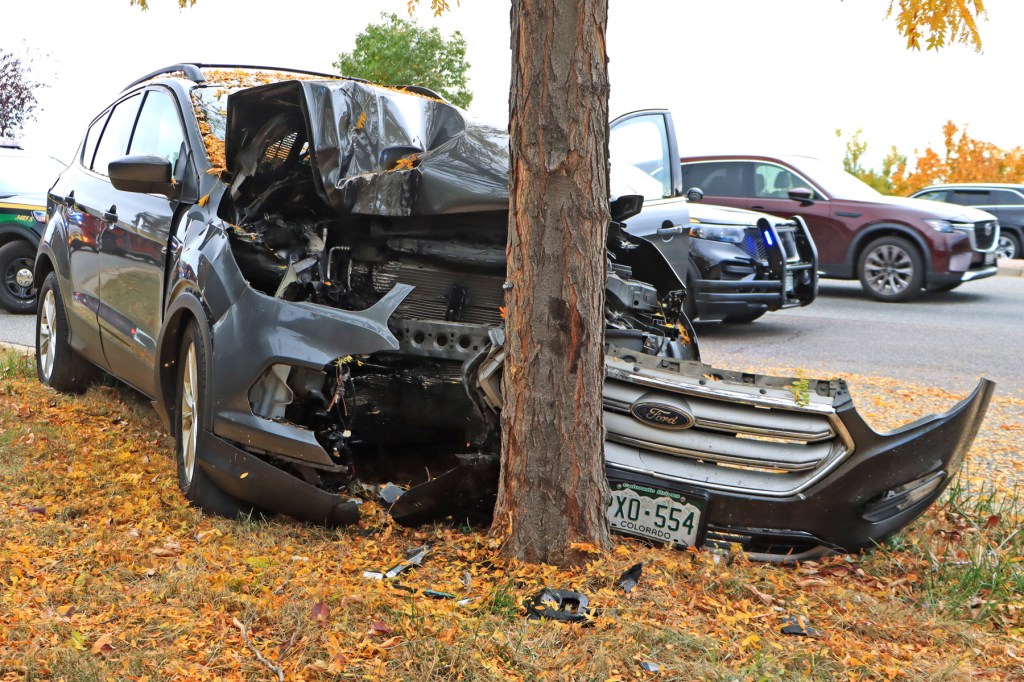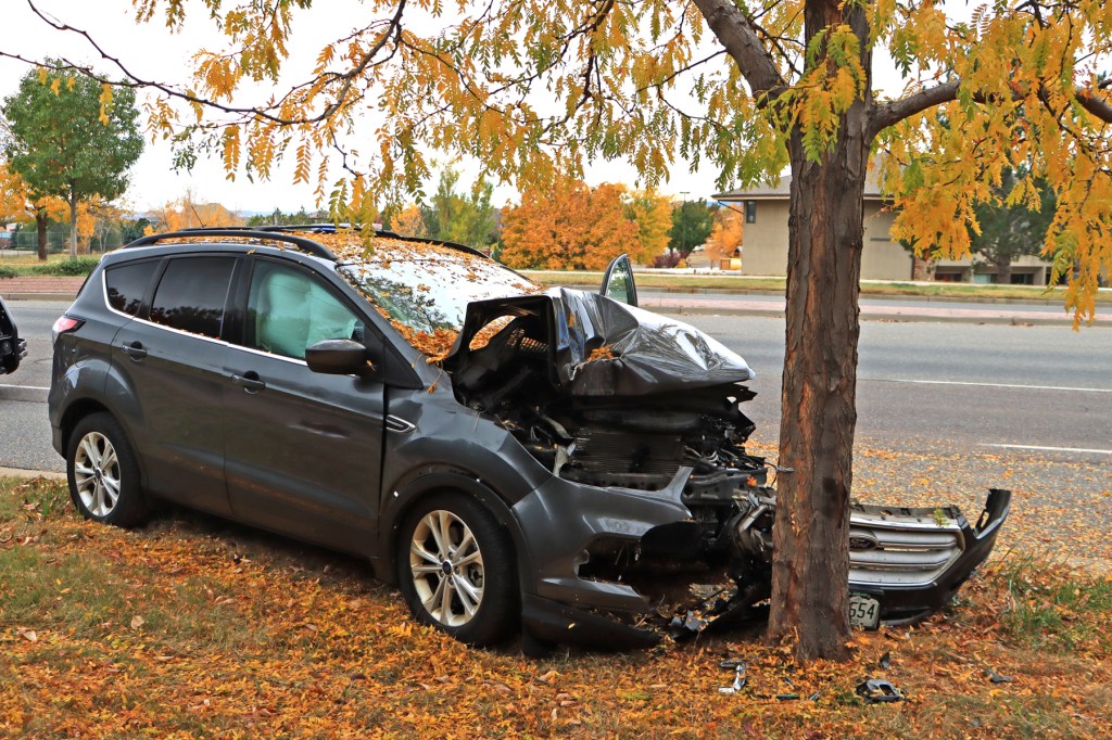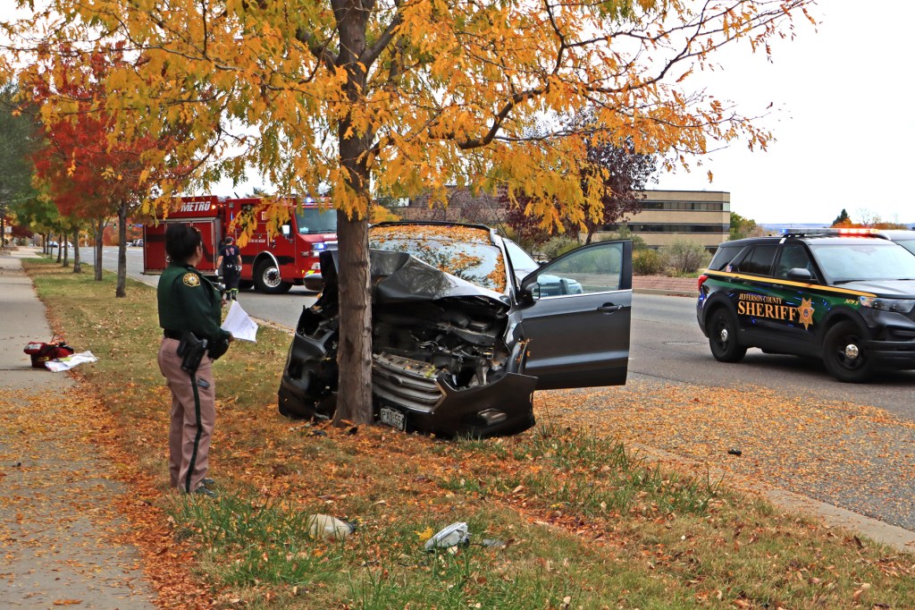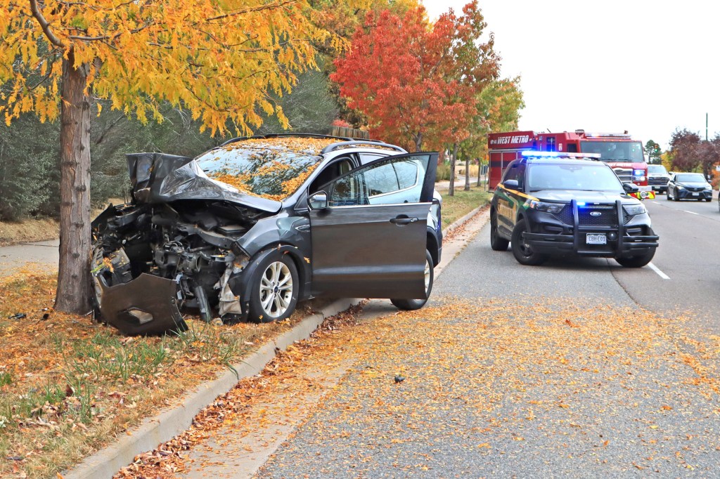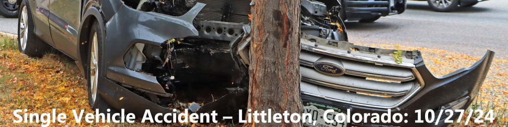 At 1:09 pm, on October 27, 2024, engine 12 and SSM 13 were dispatched to the report of a single car accident, located on West Bellview Ave., near Miller Way, in Littleton, Colorado. When units arrived, they found that a vehicle had run over the curb and hit a roadside tree. Two occupants were in the car at the time of the incident, but only the female driver received minor injuries. The units stayed on scene, until it was verified that no additional medical attention was needed and that the scene was safe. Major damage was sustained to the front of vehicle and airbags were deployed. Two Sherriff officers and one State Patrol officer were also on scene, for their reporting and traffic control.